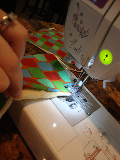 Flip it right side out and be sure to get the corners flipped all the way. I used my scissiors, don't know if that is the best way... but it's how I did it :)